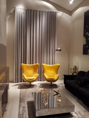 Tecidos leves são os que geralmente compõe uma cortina longa , pois deixam um caimento ideal da peça após instalada .