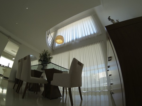 Pé direito alto , elevado ou duplo , pedem cortinas com sistema fácil de acionamento . Podem funcionar através de trilho com comando manual , parecido com uma persiana ou então o mais indicado e trabalhar com a motorização . Os motores são fortes, suportam 50Kg ou mais , dependendo do motor .... geralmente são bivolt ou seja podem trabalhar com 110v ou 220v e ficam escondidos atrás do tecido das cortinas.