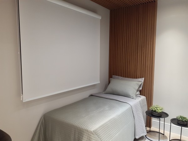Está disponível em vários tecidos entre translúcidos e blackout.