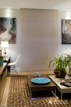 Os gomos que são formados quando o tecido da cortina é recolhido, proporcionam uma elegância incrível para o ambiente, tanto quando recolhida , quanto baixada.